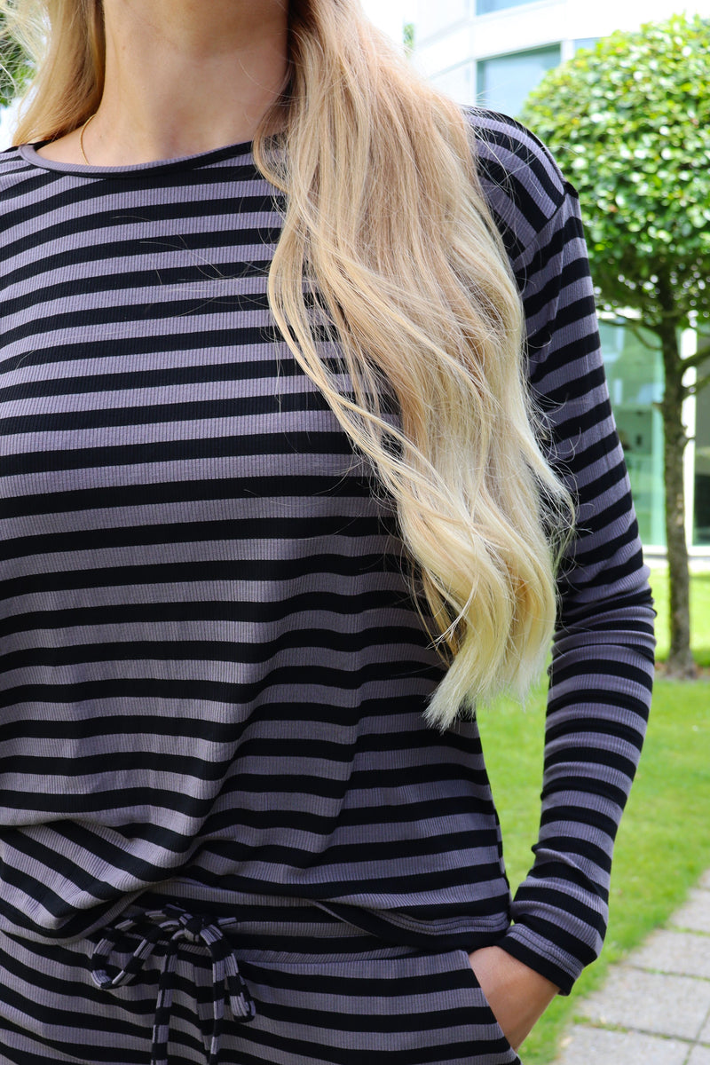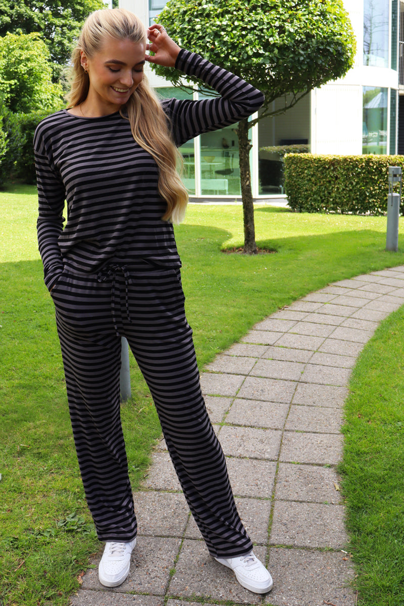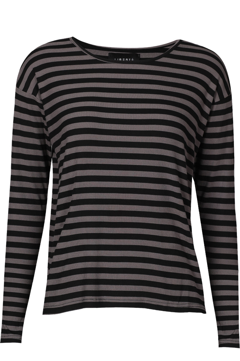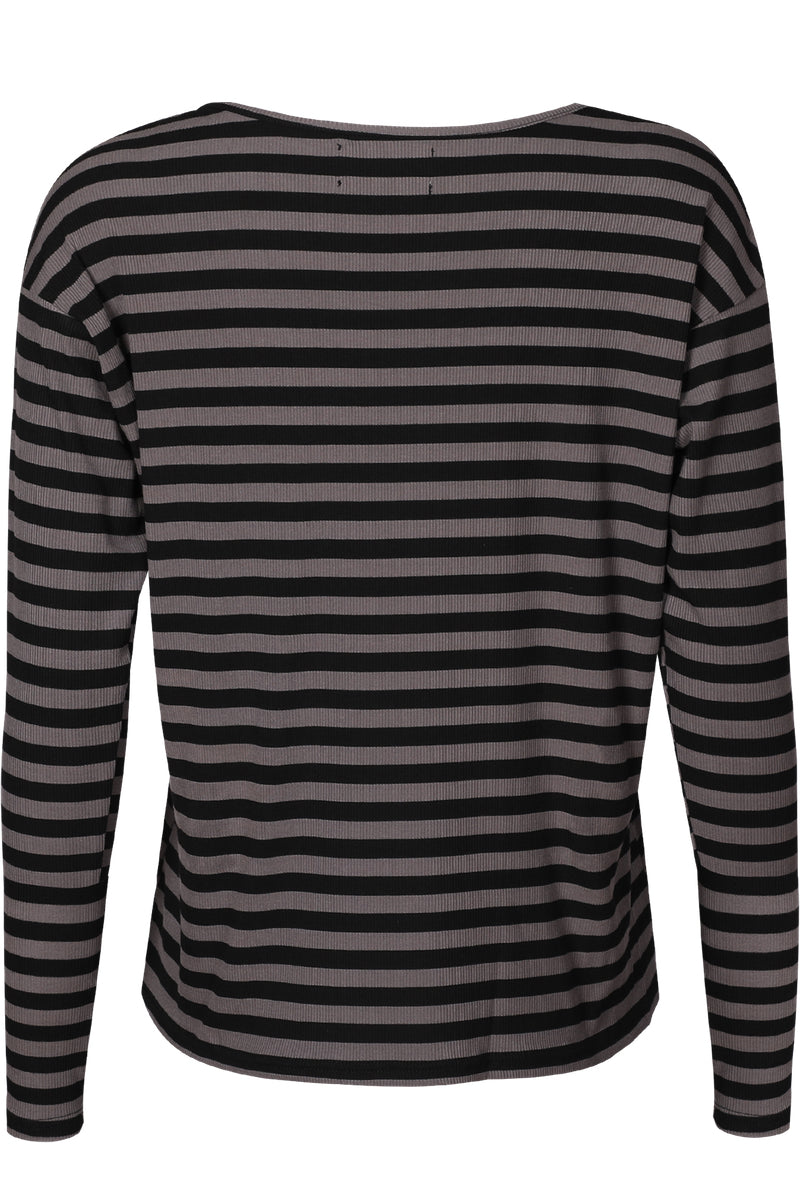 Natalia Ls Boxy Blouse | Black Dark Grey Stripe