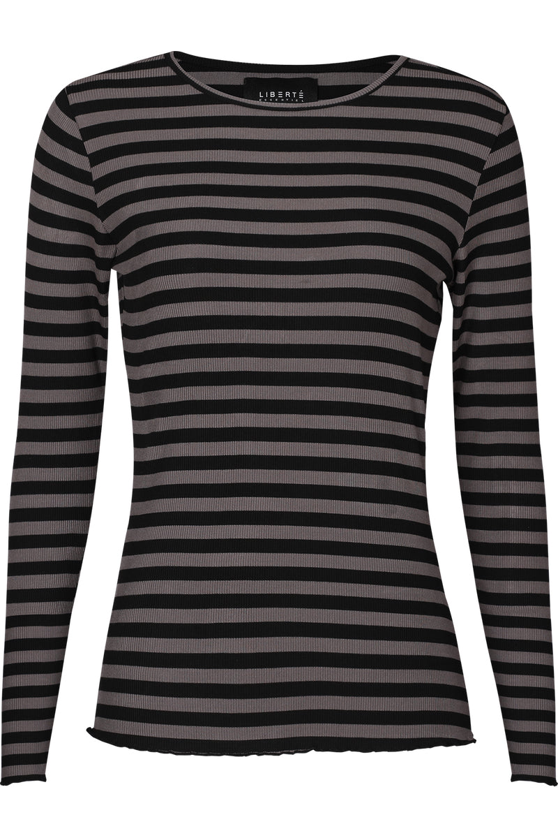 Natalia Ls Round Neck Blouse | Black Dark Grey Stripe